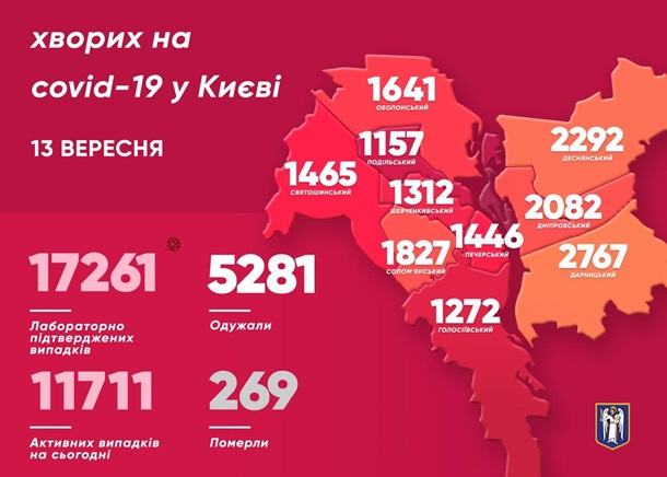 При этом трое заболевших скончались (всего 269 смертей с начала эпидемии). Всего в Киеве подтвердили уже 17 261 случай COVID-19.