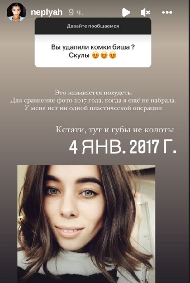 Неплях відповіла на запитання дописувачів про те, чи видаляла вона грудочки біша на вилицях і показала кадр, знятий п'ять років тому.