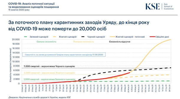 Уже к концу 2020 года от коронавируса могут скончаться 20 тысяч украинцев, считают в Киевской школе экономики.