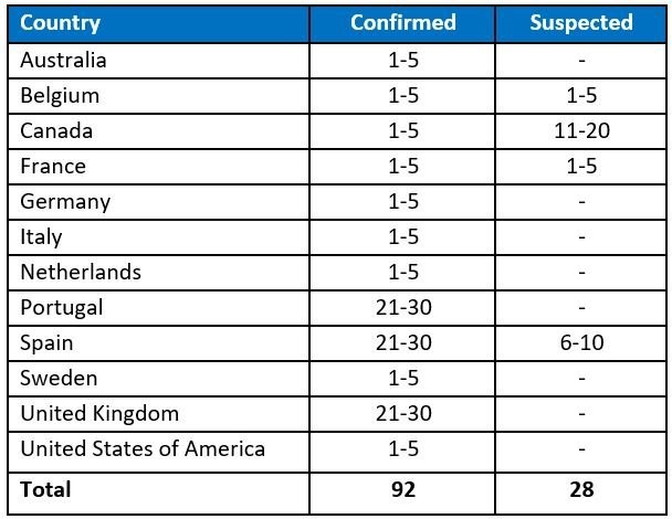 Вказано, що зв'язок між зараженням і поїздками людей, які заразилися, в регіони, де віспа мавп є ендемічною хворобою, не встановлено, що є "надзвичайно незвичайною подією".