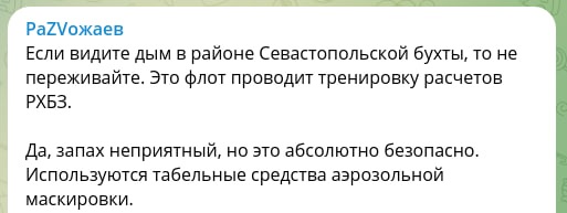 "У Севастопольській бухті все в диму. Чи то навчання, чи то не навчання? Хто в курсі?" - запитує автор публікації.