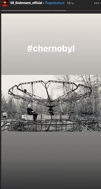 В insta-сторис артист разместил видео, на котором заснято, как Тилль катается на карусели в городе Припять. Ролик Линдеманн отметил хештегом #chernobyl.