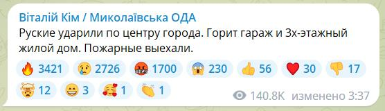 В Николаеве во время воздушной тревоги прогремели несколько мощных взрывов. Как сообщил глава Николаевской ОГА Виталий Ким в четверг, 20 июля, враг попал в центр города.