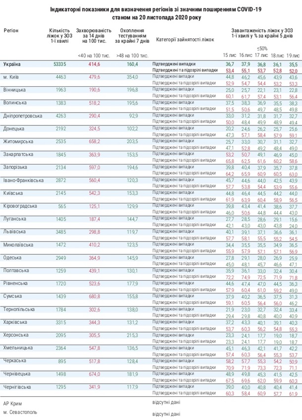 Лучше всего ситуация с койками в Херсонской (18,7%) и Луганской (24%) областях.