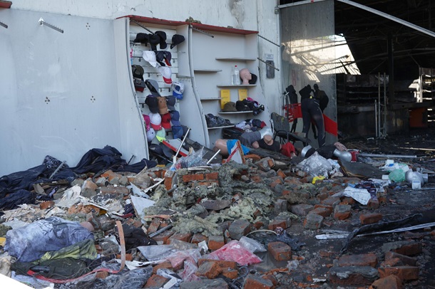 "Внасліок обстрілу ТЦ загинули 18 осіб (одна з яких померла в лікарні), при розборі завалів виявлено вісім фрагментів людських тіл. За медичною допомогою звернулась 61 особа, з них 26 були госпіталізовані до лікарні інтенсивного лікування", - інформували у службі.