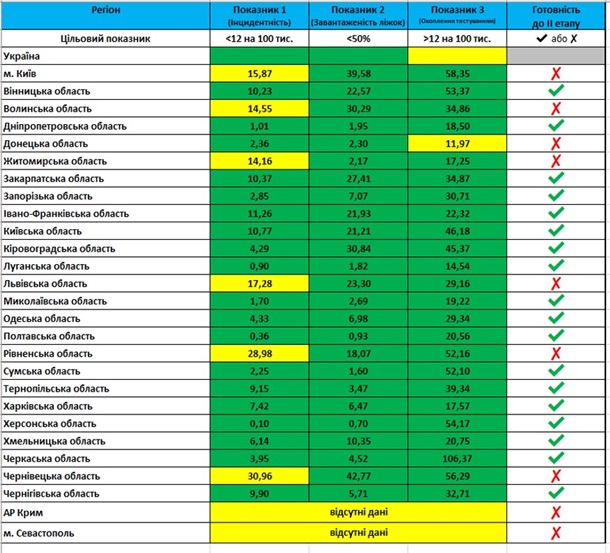Так, на следующий этап ослабления ограничений не готовы перейти город Киев, Волынская, Донецкая, Житомирская, Львовская, Ровенская и Черновицкая области.