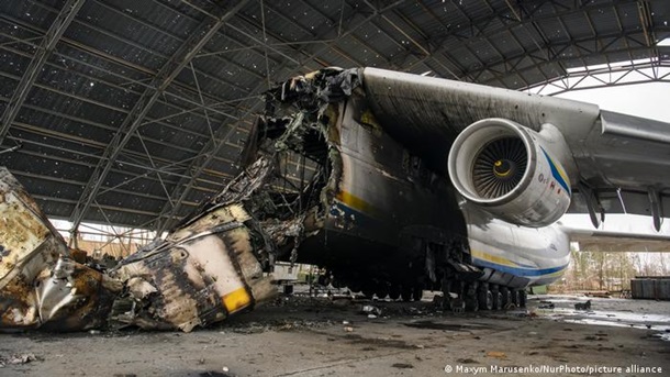 Велика жертва війни: перший та єдиний літаючий екземпляр найбільшого у світі вантажопідйомного літака Ан-225 "Мрія". Літак згорів наприкінці лютого 2022 року внаслідок боїв між російським десантом і силами ЗСУ за аеропорт "Гостомель" під Києвом.