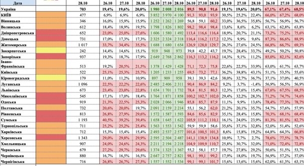 Але з 15 жовтня до червоної зони потраплять ще сім областей: Житомирська, Івано-Франківська, Київська, Луганська, Львівська, Хмельницька та Чернігівська.