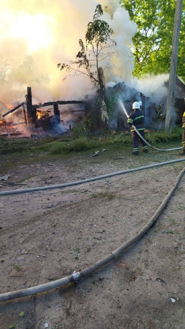 Щонайменше шість будинків, господарська споруда та гараж - пошкоджені, вирують пожежі. Пошкоджено також і лінію електропередач.