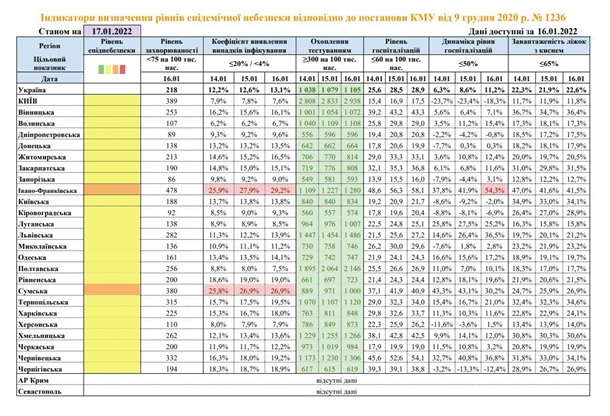 При цьому на Івано-Франківщині червоним зараз є показник динаміки рівня COVID-госпіталізацій - 54,3%, при нормі не більш як 50%.