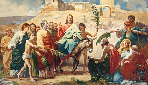 Люди зустрічали його як Спасителя, укладаючи на шляху гілки і одяг. Народ вигукував: "Осанна Синові Давида! Благословен гряди в ім'я Господнє!" Фарисеї хотіли, щоб народ замовк, але Христос відповів їм: "Якщо вони замовкнуть, то каміння почне говорити!"