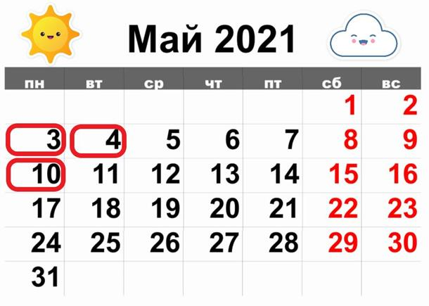 Таким чином, на початку місяця буде чотири вихідних дні підряд - з 1 по 4 травня.