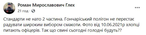 "Гончарівський полігон не перестає радувати широким вибором смакоти. Фото від 10.06.2021 року, хлопці питають офіцерів: "Так що, свині сьогодні голодними будуть?", - підписав фотографії автор публікації.