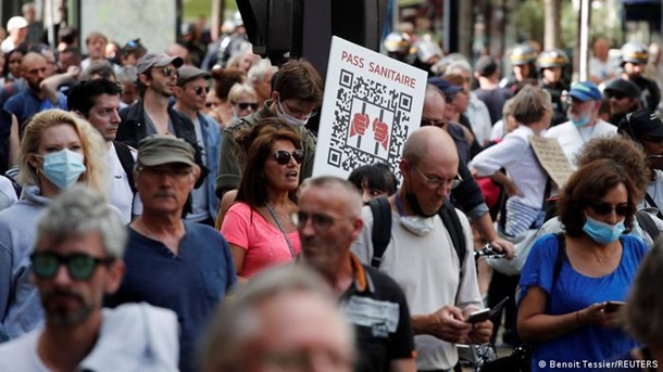 Борючись з небажанням населення вакцинуватися, з початку серпня влада Франції зобов'язала пред'являти сертифікат вакцинації для входу в різноманітні громадські місця та заклади. Відтоді в країні не вщухають акції протестів, під час яких на вулиці міст виходять тисячі громадян. Деякі профспілки й громадські організації підтримали протести, висловивши стурбованість через порушення особистих свобод.