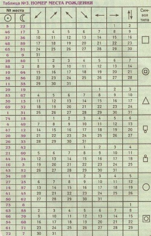 В правой колонке Таблицы 3 находим свой символ, а в столбиках по центру (под стрелочками) дату своего рождения