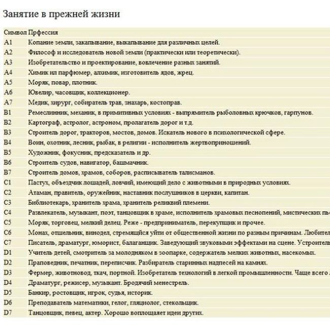 Для того, чтобы узнать чем Вы занимались используйте Ваши ЦИФРУ и ЗНАК, полученные в таблице 2