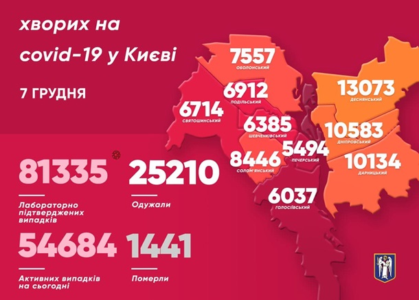 С начала пандемии подтвержденных случаев заболевания уже 81 335. Всего в столице 1 441 летальный случай от коронавируса. Преодолели болезнь 25 210 жителей Киева.