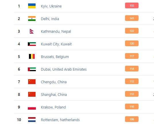 Киев снова занял первое мето в антирейтинге городов мира с самым грязным воздухом, о чем свидетельствуют данные портала iqair.com.