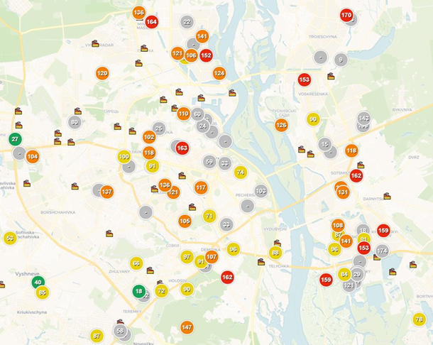 Кроме того, портал Saveecobot зафиксировал, в каких районах Киева загрязнение воздуха выше всего.