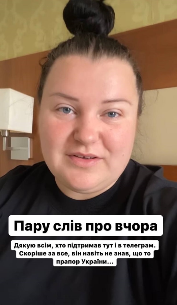 За словами артистки, обранець Ріанни залишив синьо-жовтий прапор, бо він, мабуть, не знав, як виглядає український прапор, тому й проігнорував його і взяв лише бюстгальтери, які фанатки кидали йому на сцену.