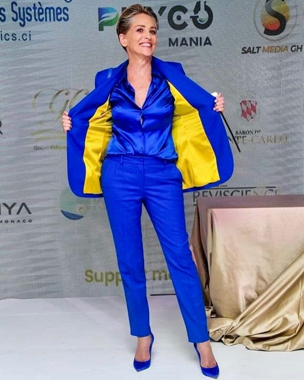 Голлівудська актриса Шерон Стоун постала на Каннському фестивалі у вбранні у кольорах українського прапора. Кінозірка висловила підтримку Україні. Фото з'явилося у мережі.