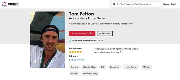 Британский актер, прославившийся ролью Драко Малфоя в киносаге Гарри Поттер, Том Фелтон нашел подработку во время карантина. Звезда зарабатывает на персональных видеопоздравлениях, пишет Lad Bible.