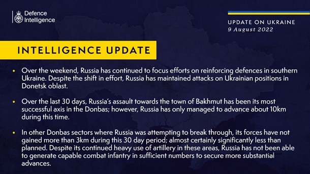 За даними британської розвідки, за останні 30 днів найуспішнішим напрямком для Росії на Донбасі став Бахмутський. Однак за цей час військам РФ вдалося просунутися лише на десять кілометрів.