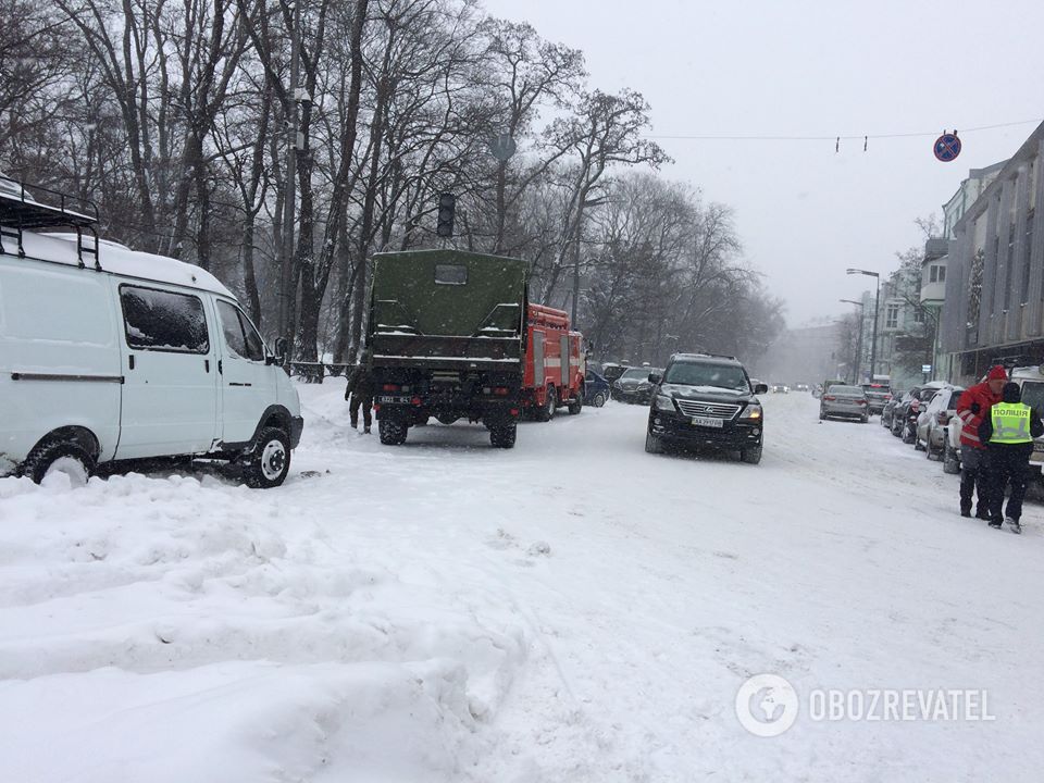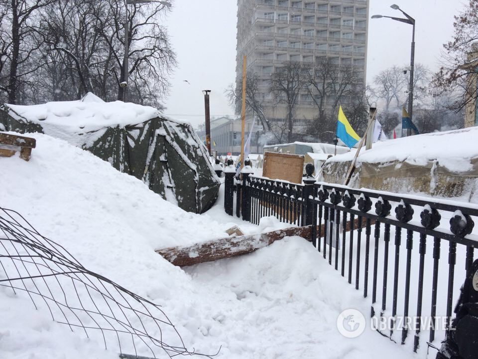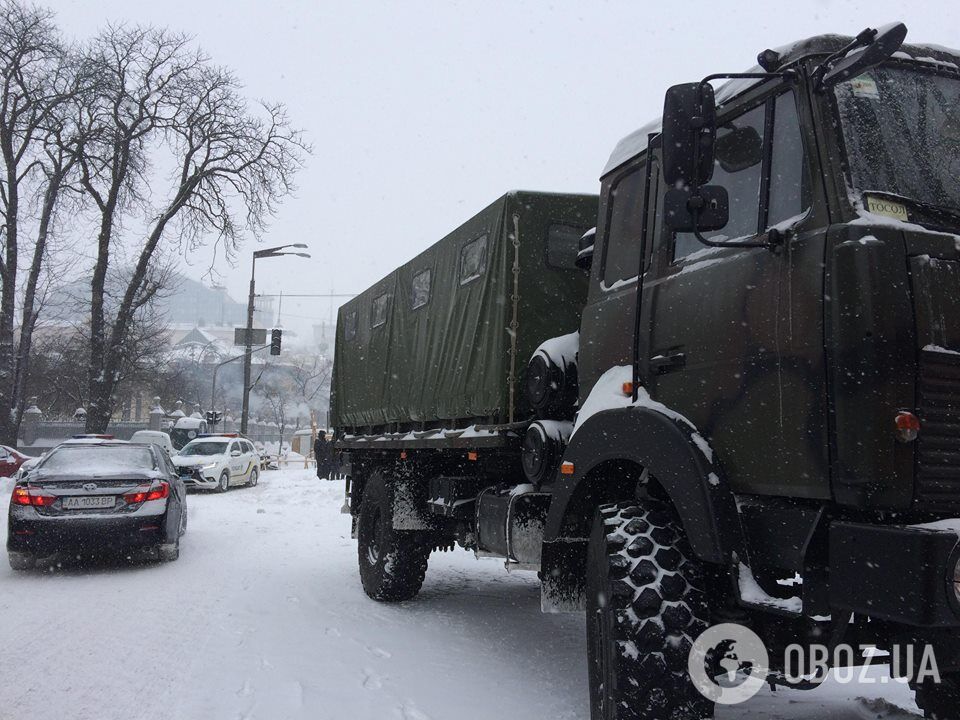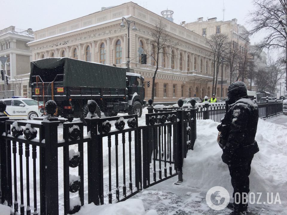 Проход со стороны Верховной Рады завален шинами. По периметру правительственного квартала находится много полицейских. Подтянуты автозаки и пожарные машины.