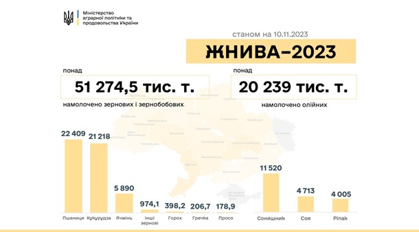 На сегодня, 10 ноября, сельхозпроизводители Украины собрали 71,5 млн т нового урожая зерновых и масличных культур. Об этом сообщила пресс-служба Министерства аграрной политики и продовольствия.