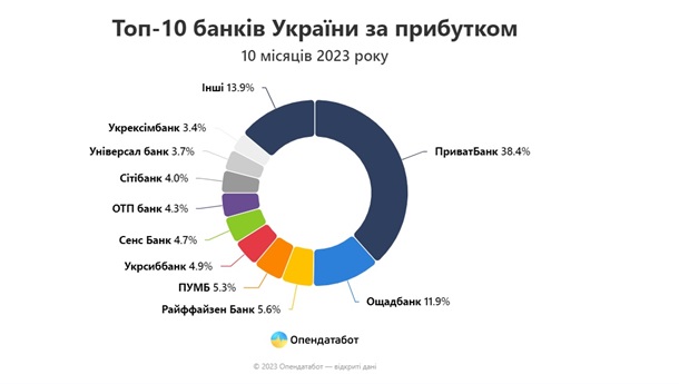 Государственные ПриватБанк и Ощадбанк заработали половину общей прибыли всех украинских банков за 10 месяцев 2023 года. Выросли и их доходы - вдвое у ПриватБанка (47,1 млрд) и в 19 раз - у Сбербанка (14,58 млрд).