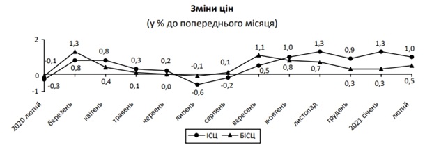 У лютому зростання цін трохи сповільнилося в порівнянні із січнем - з 1,3% до 1%. У річному обчисленні інфляція на максимумі з 2019 року.