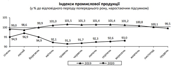 Отметим, что это меньше, чем в августе, когда зафиксировали падение на 5,3%. При этом за январь-сентябрь 2020 года по сравнению с аналогичным периодом прошлого года промпроизводство сократилось на 7,0%.