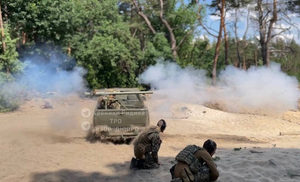 Бійці 3-ї роти у складі 98 батальйону Азов Дніпро показали, як випробовують радянський станковий протитанковий гранатомет, встановлений на автомобіль із закритою кабіною та відкритим вантажним майданчиком.