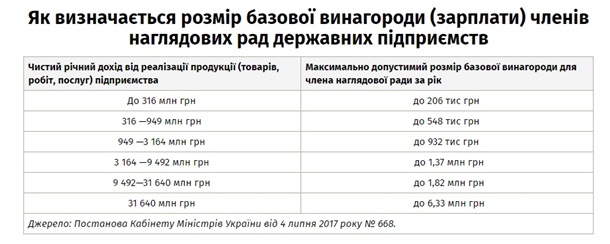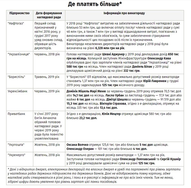 Например, в Нафтогазе члены набсовета в 2018-м получали 6,3 млн грн, а глава набсовета УЗ Шевки Аджунер декларировал в 2018 году доход в 650 тыс. грн в месяц (около 7,8 млн грн в год).