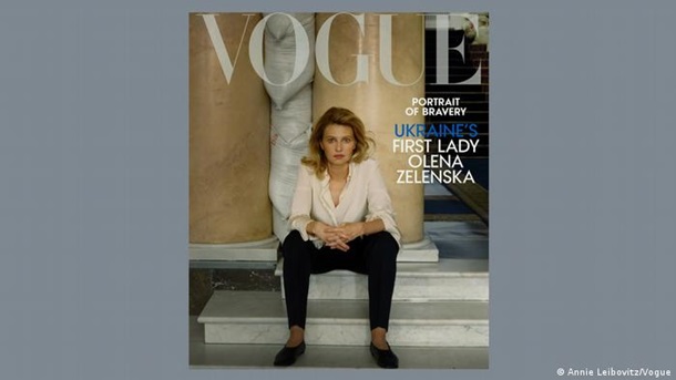 Фото Олени Зеленської, яке зробила Енні Лейбовіц, прикрасить жовтневу обкладинку Vogue: у простій білій блузці, з легким макіяжем і без прикрас, зі спокійним і втомленим виглядом перша леді України сидить на мармурових сходах. Сьогодні вона стала "дипломаткою воєнного часу" на міжнародній арені. У соцмережах вона написала: "Я хочу, аби тут, на моєму місці, ви бачили кожну українку".