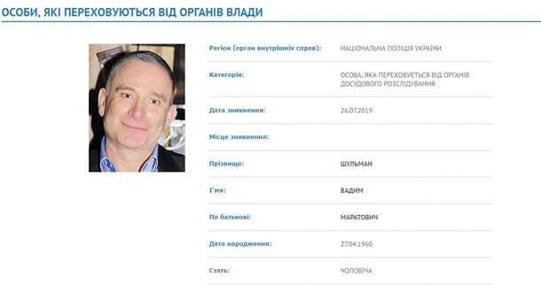Нацполиция сообщила о подозрении и объявила в розыск бизнесмена, почетного президента Федерации тенниса Украины Вадима Шульмана. Об этом свидетельствует информация на сайте МВД.