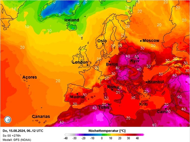 Ранее Диденко опубликовала прогностическую карту на 15 августа, согласно данным которой, в Украине ожидаются +40 градусов.