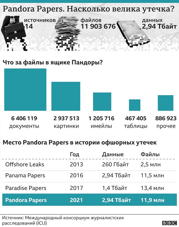 Три десятки нинішніх і колишніх глав держав і понад три сотні чиновників з усього світу фігурують в офшорному досьє під назвою Pandora Papers.