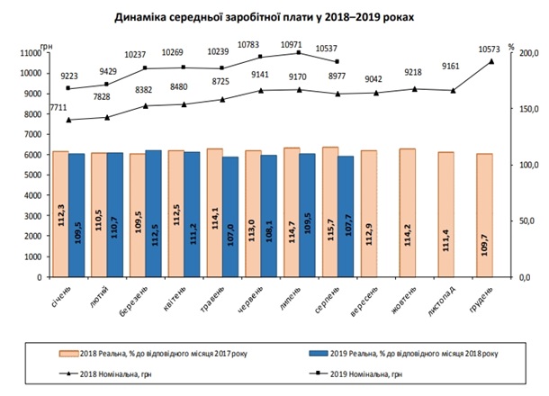 Относительно августа прошлого года средняя зарплата выросла на 17,4%. Реальная зарплата (с учетом инфляции) в августе 2019 года к августу прошлого года выросла на 7,7%.