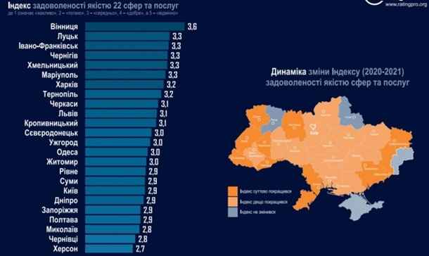 Наступні у рейтингу йдуть Луцьк, Івано-Франківськ, Чернігів, Хмельницький, Маріуполь.