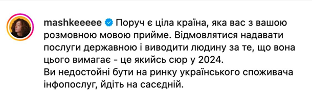 "Мені зручніше так. Давайте без цього… Якщо ви не розумієте (російську мову - ред.), я не тримаю вас тут і не змушую слухати", - відповів дівчині спікер.