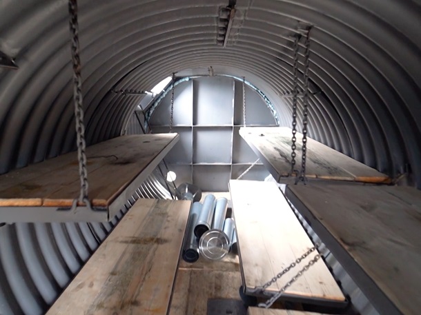 Модульные укрытия для блиндажей - это специальная защитная конструкция, которая после погружения в полтора метра под землю способна выдержать удар 152-миллиметровых артиллерийских снарядов. Внутри предусмотрены зона отдыха, места для печей и выходы для труб, стоки для воды, запасной выход с лестницей.