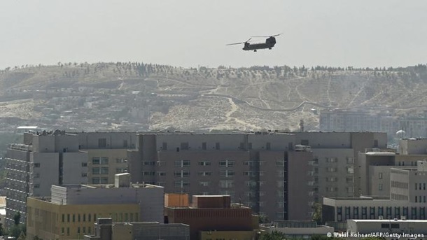 Американський військовий гелікоптер Chinook евакуює співробітників посольства США у Кабулі 15 серпня, невдовзі після того, як таліби увійшли до афганської столиці. Кілька гелікоптерів для евакуації своїх дипломатів доправила і Німеччина.