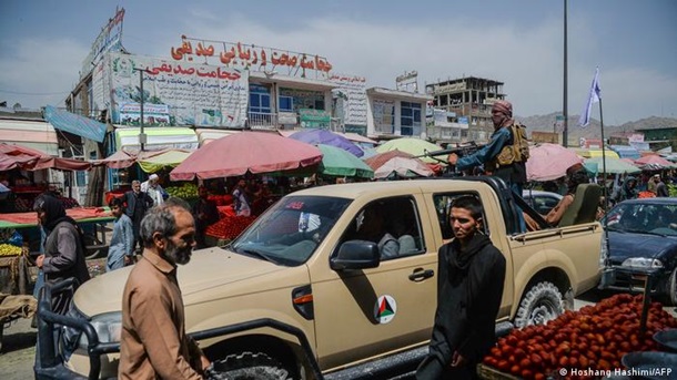 Після двох десятиліть опору іноземним військам та урядовим підрозділам Афганістану, таліби легко захопили владу в країні, щойно США, Німеччина та інші країни коаліції вивели свої контингенти. Ці бойовики "Талібану" патрулюють на ринку в одному з районів Кабулу за кілька днів після захоплення міста.