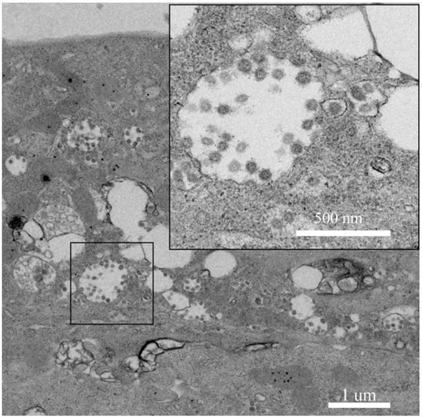 Микрофотография вирусных частиц 2019-nCoV