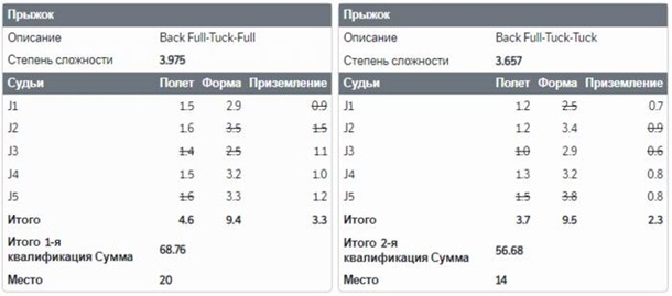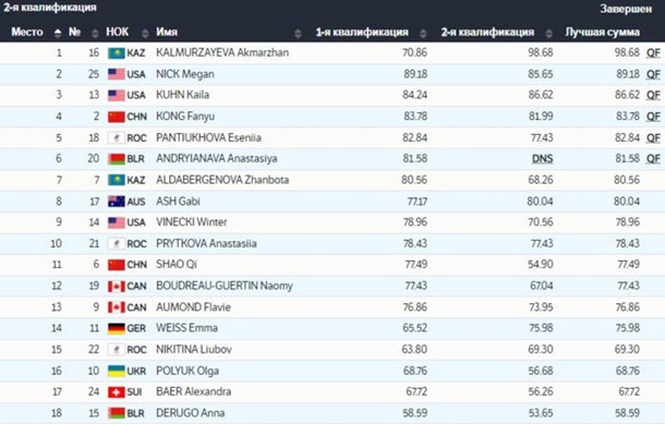 Бали Ольги Полюк у першій та другій кваліфікаціях
