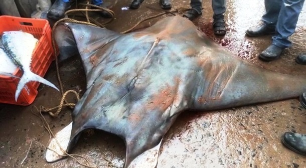 В Индии во время ранней утренней рыбалки удалось выловить ската, вес которого составил 800 килограммов. Рыбаки выручили за него 50 тысяч рупий.