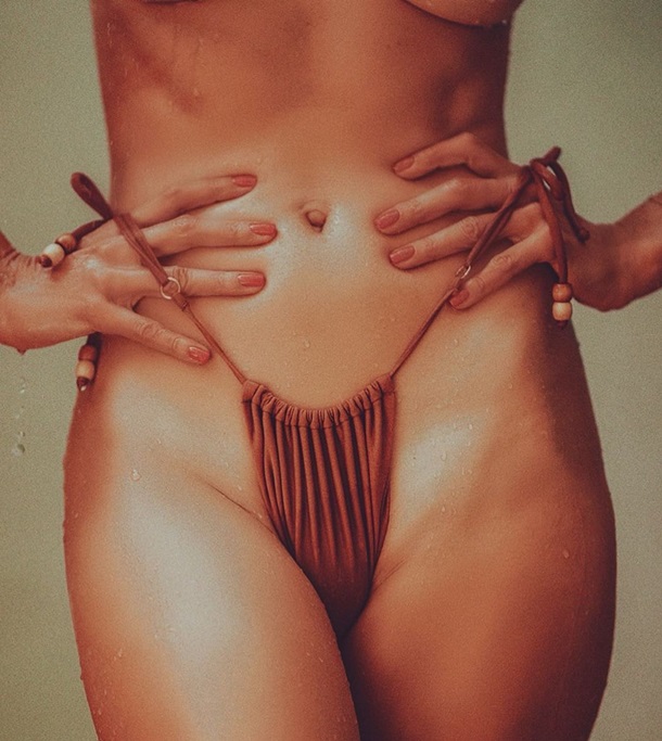Ранее Амбросио подразнила подписчиков откровенным кадром, на котором видны только ее миниатюрные коричневые трусики с завязками от купального костюма. Трусы едва прикрывают интимное место Алессандры.