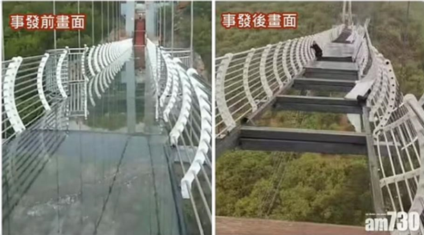 У Китаї скляний міст побудовано на горі Піянь на висоті 100 метрів. Коли у п'ятницю ввечері ураганний вітер вибив кілька його секцій, один турист виявився заблокованим над прірвою.