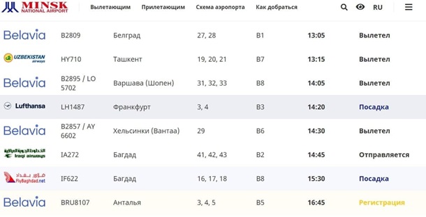З аеропорту Мінська понад годину не випускають рейс Lufthansa Мінськ - Франкфурт, повідомляє Белсат у понеділок, 24 травня.
